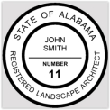 Professional Stamps and Seals for the State of Alabama. Licensed Engineer, Licensed Land Surveyor, Registered Landscape Architect, and Registered Architect.