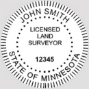 Official layout for the Licensed Land Surveyor Stamp for the State of Minnesota. Circular with Plate size diameter max.1-5/8". more…