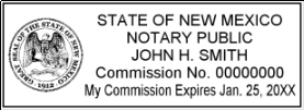 “Order a seal or rubber stamp...An embosser is made of heavy metal and makes an impression on the paper. It contains the applicant’s name, and the words ‘Notary Public-State of New Mexico’. Rubber stamps cannot have a signature line and a round rubber stamp is not acceptable.”
